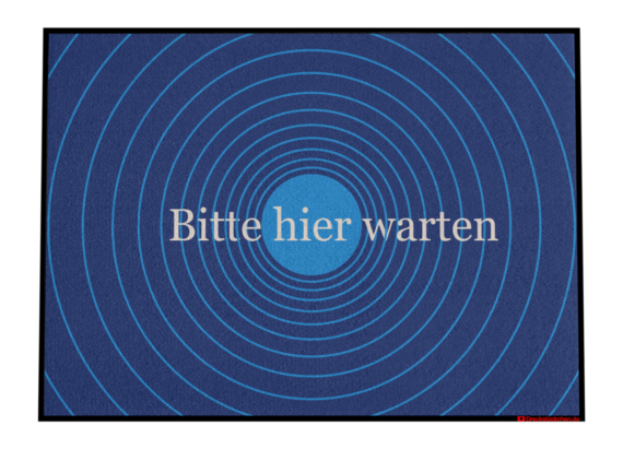 Die sympathische Abstandhalter-Fußmatte. Ideal für den Eingangsbereich von Apotheke, Arztpraxis, Rezeption und im Empfangsbereich Ihres Büros: Diskretions-, Empfangs-, Anmeldungs-, Rezeptions- Abstandshalter-Fußmatte eine gelungene Willkommens-Fußmatte für Ihre Räume.