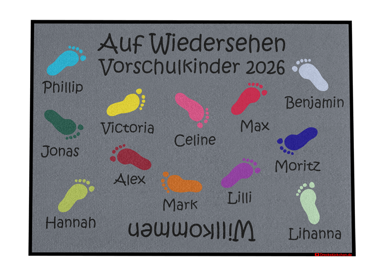 Kindergarten Kita Vorschulkinder Abschiedsfußmatte einzelne Füßchen (Entwurf C)