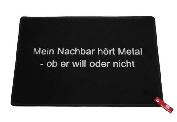 Die Fußmatte „Mein Nachbar hört Metal – ob er will oder nicht“: Ein True-Dreckstückchen für True-Headbanger!